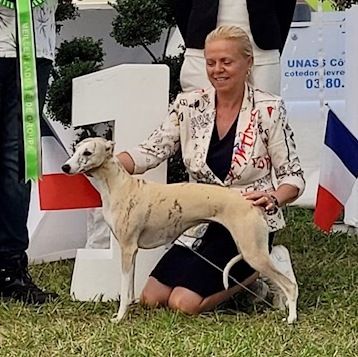 J'ai trouvé l'élevage de la Vallée des baronnies. Michele qui nous à très bien renseignés sur le whippet, ma vendu ma première whippet que j'ai eu le jour de noël en 2009 c'était le meilleur cadeaux de toute ma vie. Avec cette chienne j'ai beaucoup progresser, elle ma fait approfondir mes connaissance en expo. Je suis devenu Championne d'Espagne grâce à Elle. J'ai une complicitée extraodinaire avec elle ... 1 ans après Michele ma donner Flemingite aigu avec la quel j'ai fais quelque expo mais maintenant elle reste à la maison sous la couverture (ce qui lui convains très bien) Ensuite Michele ma donné Fifi brain d'Acier celle-ci à gagné des nombreux Cacs Cacib et des réserve... Cette année elle à fait Vice championne de france à Metz en remportant la R.CACIB. Et la à était qualifiée pour aller à la Cruft's en Mars 2013.